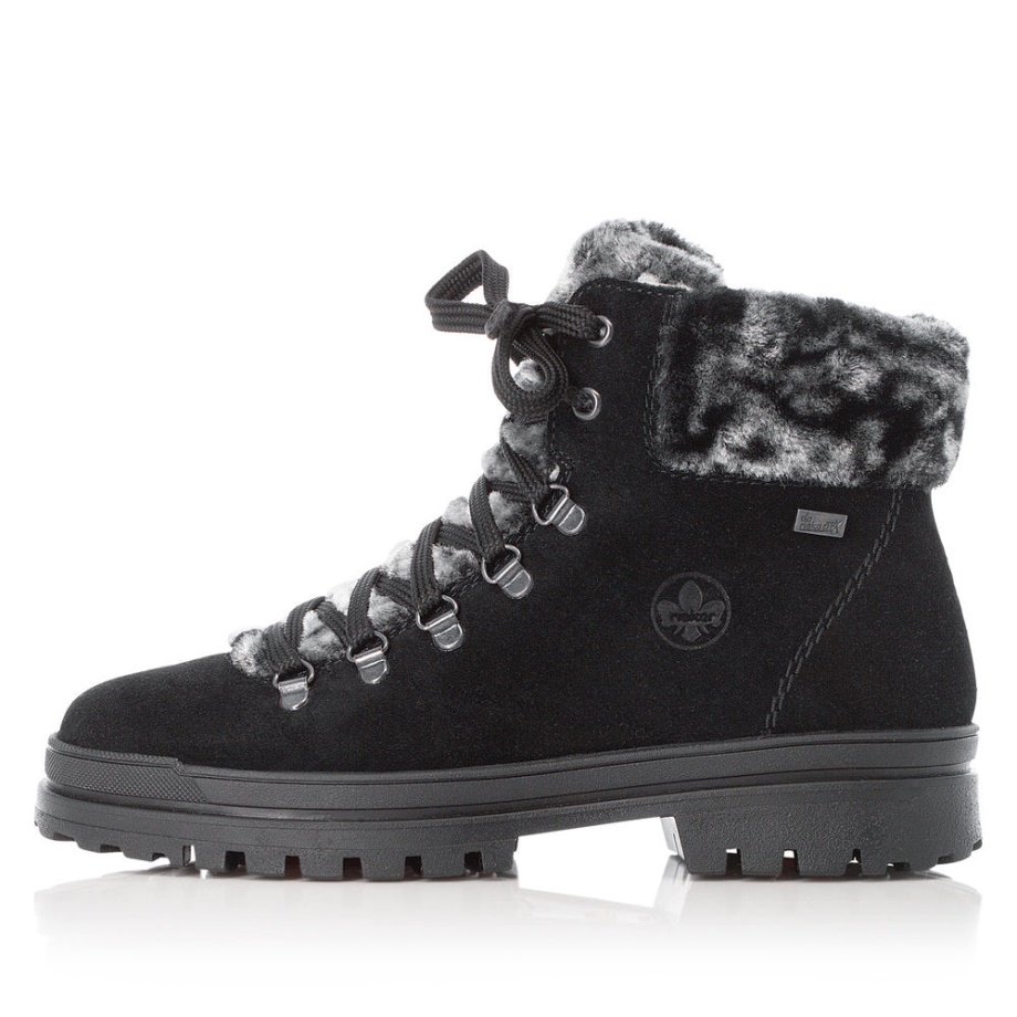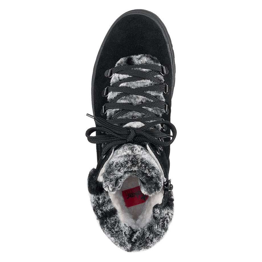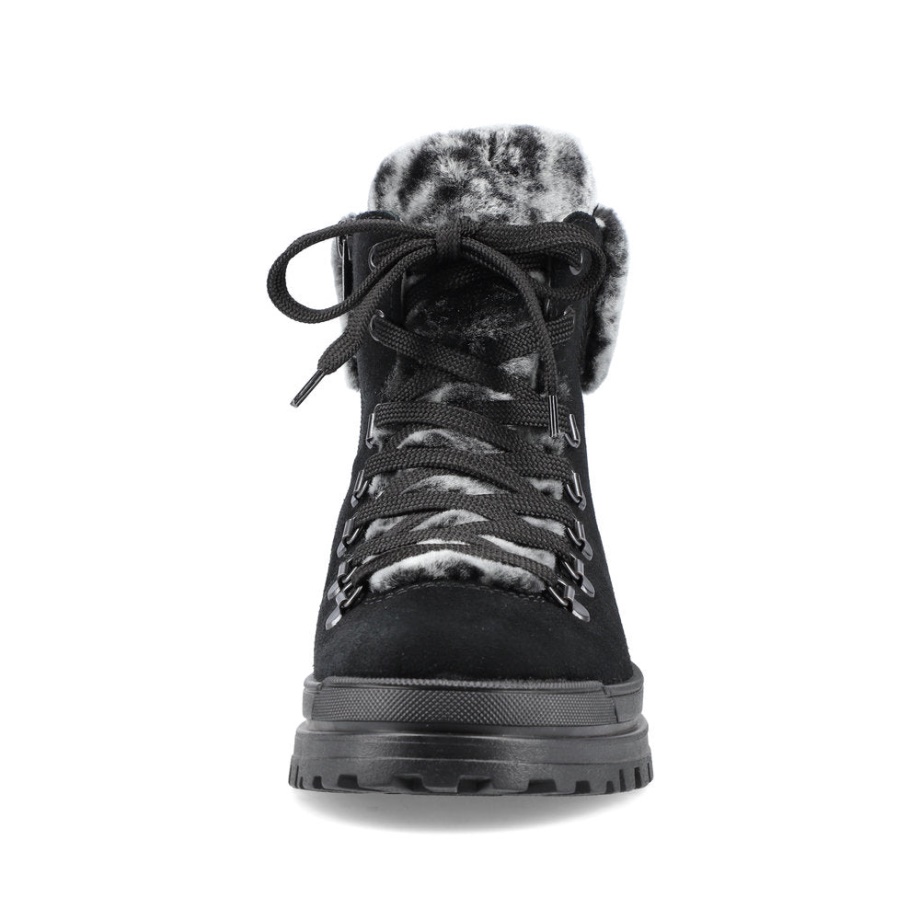 Te Modne Sznurowane Botki Wykonane Z Czarnego Zamszu Z Praktycznym Zamkiem Błyskawicznym To Przytulny Towarzysz. Gruba Wyściółka I Właściwości Hydrofobowe Zapewniają Ciepło I Suchość Stopom. Cały Dzień. Górskie Sznurowanie, Cholewka Imitująca Futro I Wyjątkowa Podeszwa Z Antypoślizgowymi Kolcami Sprawiają, że Ten But Jest Wyjątkowy!