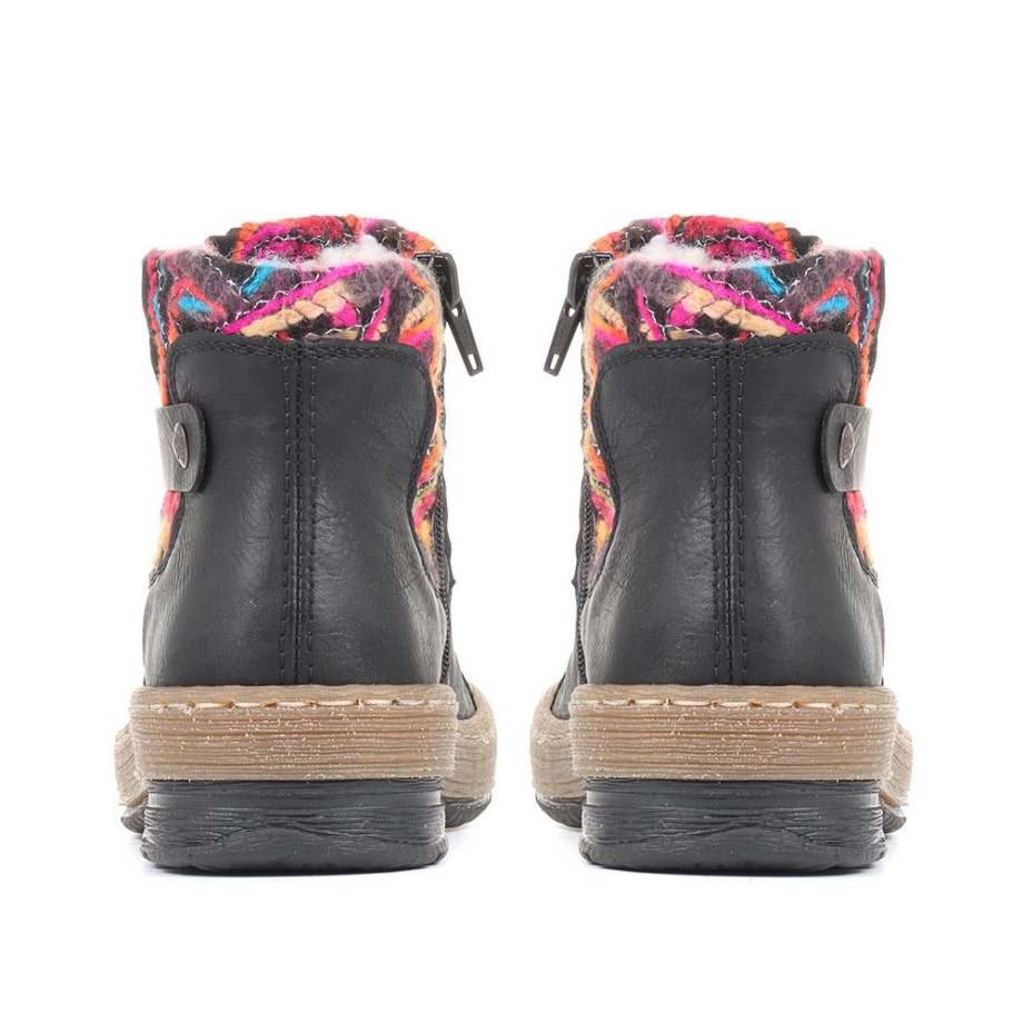 Czarne Kontrastujące Botki Rieker