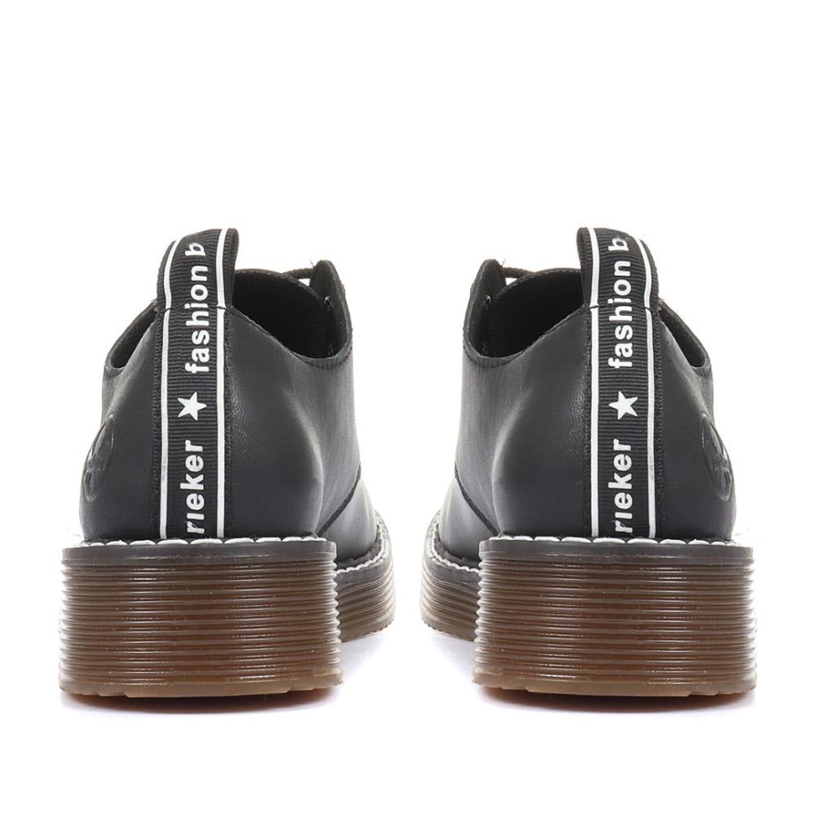 Home| Prześledzone Wstecz| Kobiety| Czarne, Skórzane, Sznurowane Buty Typu Derby Firmy Rieker