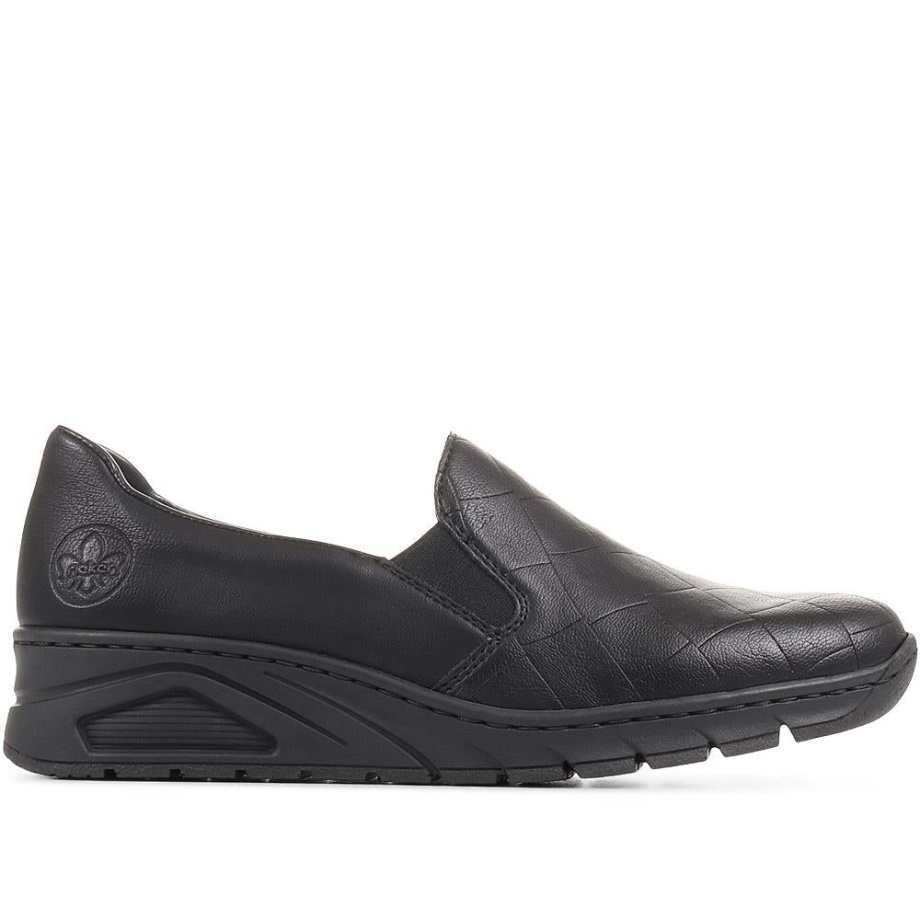 Bardzo łatwe Do Założenia, Te Lekkie Buty Firmy Rieker To Idealny Wybór Na Eleganckie Okazje, Takie Jak Praca. Dwa Elastyczne Panele Zapewniają łatwe Wsuwanie Butów I Zapewniają Bezpieczne Dopasowanie, Które Wspiera Twoje Naturalne Ruchy Podczas Chodzenia. Te Wsuwane Buty, Stworzone Z Wykorzystaniem Technologii Komfortu Antystresowego Rieker, Mają Miękką Wyściełaną Wkładkę I Lekką Jak Piórko Podeszwę Z Amortyzującym Wsparciem.