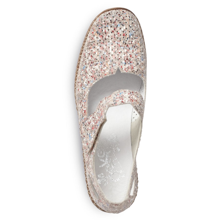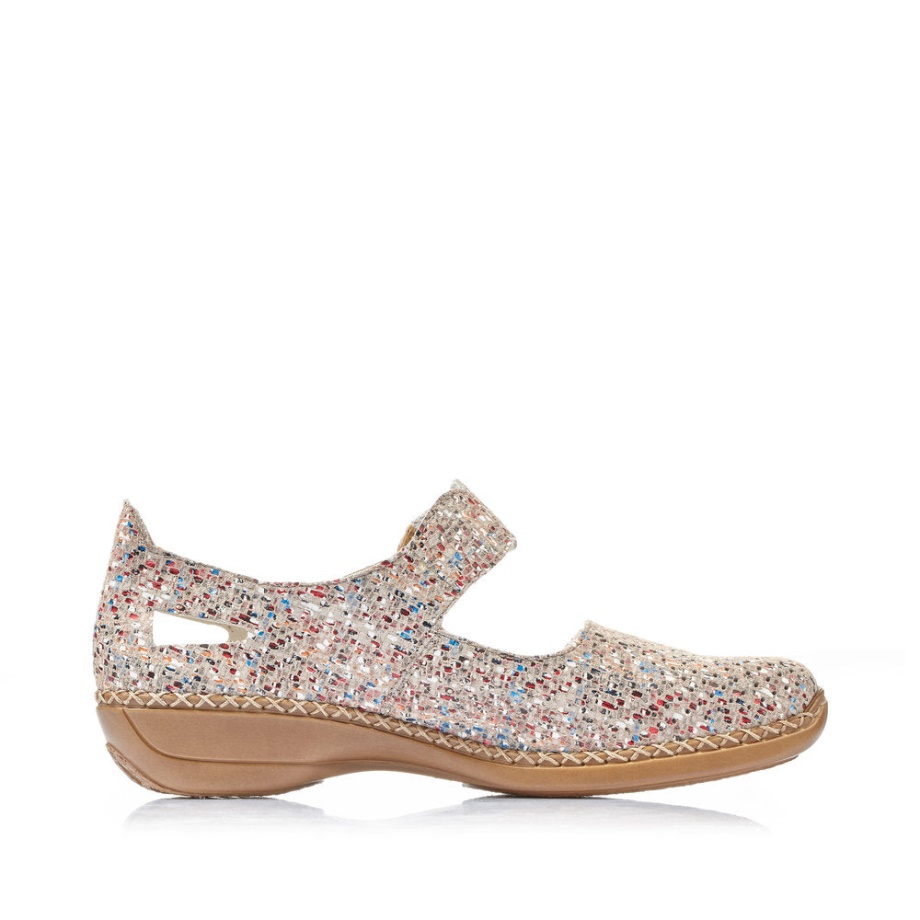 Ten But Mary Jane W Kolorze Konfetti Ma Urocze Wycięcia, Zapięcie Na Rzep Dla Indywidualnego Dopasowania I. Całodzienne Wsparcie Naszej Wkładki Antystresowej I Podeszwy O Wysokiej Przyczepności. Skórzana Cholewka. Wysokość Obcasa 1,3 W Miękkiej Wkładce Riricon.