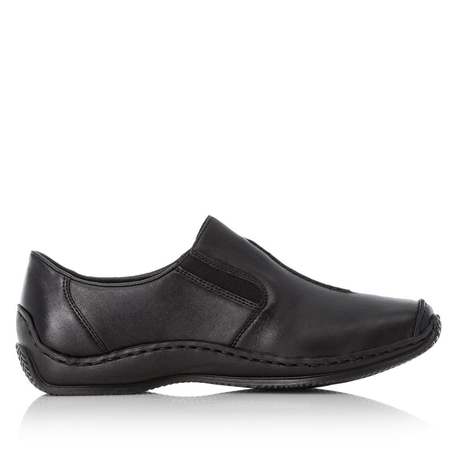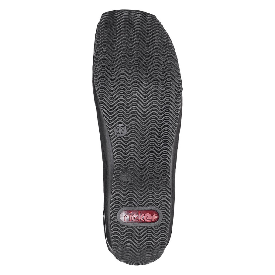 Zachowaj Prostotę - Z Tym Damskim Butem Firmy Rieker Wykonanym Z Czarnej Gładkiej Skóry! Prosty Model Posiada Wygodną Sportową Podeszwę. łatwo Się Poślizgnąć. Dzięki Minimalistycznemu Wzornictwu Ten But Pasuje Prawie Do Wszystkiego!