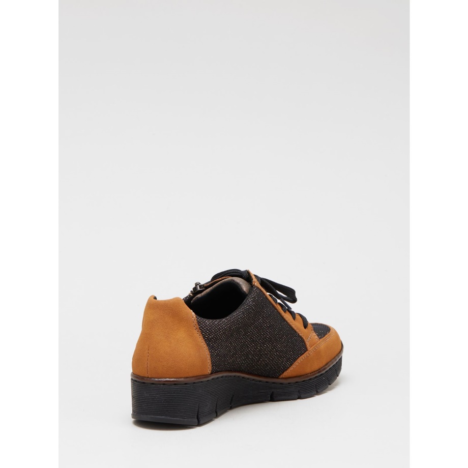 Stylowa Para Butów Na Koturnie Firmy Rieker Z Zapinanymi Na Zamek Błyskawiczny I Bocznym Zamkiem Błyskawicznym. Te Buty Sportowe Są Idealne, Gdy Chcesz Trochę Wzrostu, Ale W Swobodnym Stylu, A Ponadto świetnie Wyglądają Ze Wszystkim, Od Dżinsów Po Spódnice. Sznurowane Zapięcia Strona Wewnętrzna: Skóra, Tekstylia; Zewnętrzna I Podeszwa: Sztuczna. Wysokość Obcasa: 3,7 Cm (1,5"). Wszystkie Wymiary Są Przybliżone.