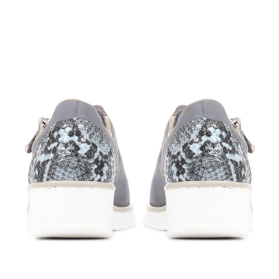 Ta Stylowa Para Tenisówek Na Koturnie Bezproblemowo Wpasuje Się W Twoją Letnią Garderobę. Wyobrażone W Sznurowanej Sylwetce, Cholewki Są Wykonane Z Gładkiego Materiału, Z Licznikiem Skóry Węża Na Pięcie I Klasycznym Zamkiem Błyskawicznym Z Boku. Umieszczone Na Elastycznej Podeszwie Zewnętrznej Z Klinem Dla Wygodnego Zwiększenia Wysokości, Wnętrze Ma Amortyzowaną Wkładkę, Z Podeszwą środkową O Wysokim Odbiciu Dla Dodatkowego Komfortu Na Każdym Kroku.