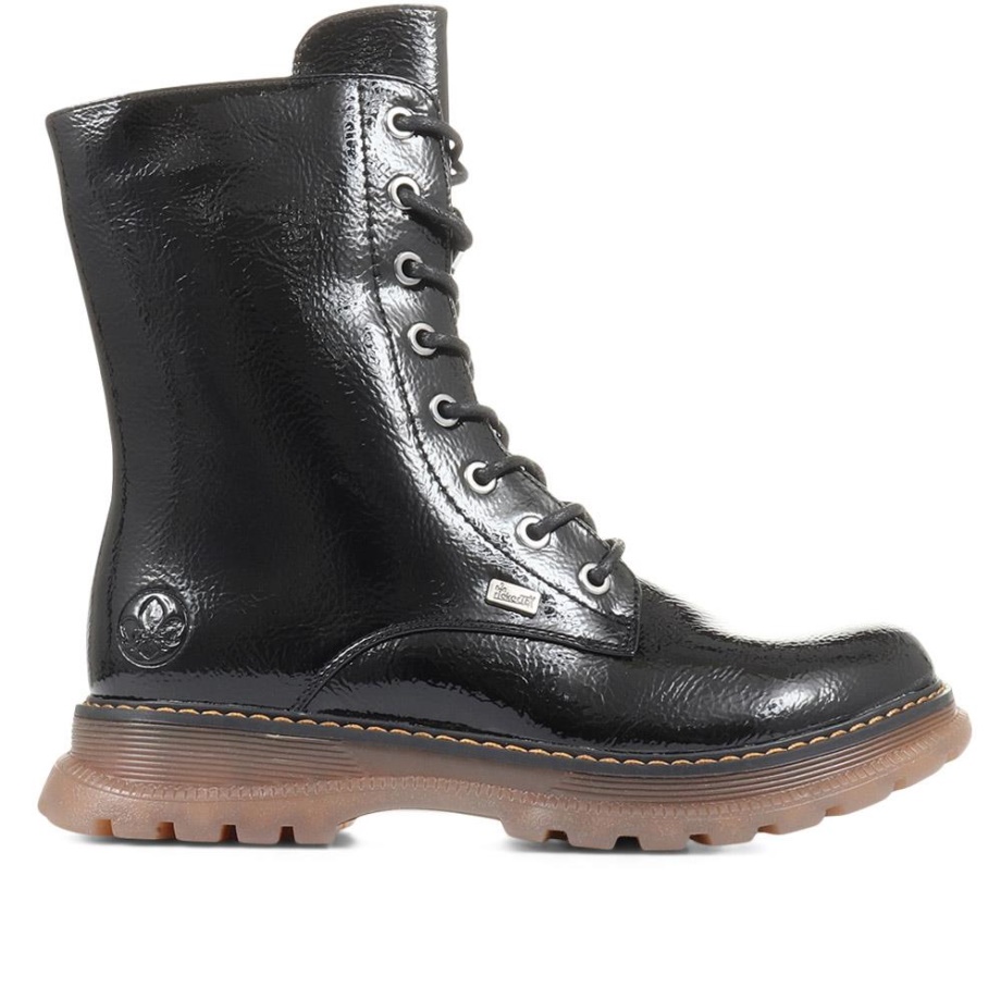 Rieker Czarne, Lakierowane, Sznurowane Buty Na łydce