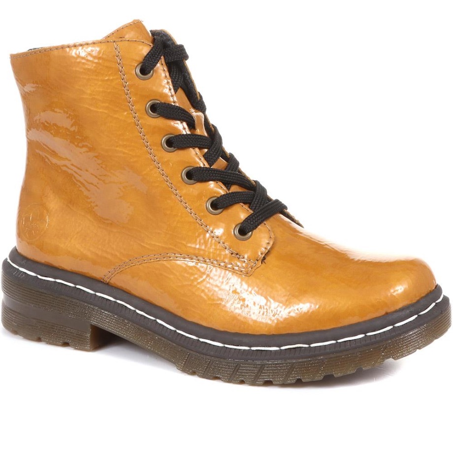 Dodaj Odważnego Stylu Do Swojego Codziennego Ubioru Dzięki Sznurowanym Butom Do Kostki Rieker. Masywna Podeszwa Ma Zaskakująco Lekkie Właściwości I Ma Głębokie Korki Dla Dodatkowej Przyczepności I Stabilności. Wewnętrznie Pluszowa Wyściełana Wkładka I Miękka Wyściółka Z Polaru Otulą Twoje Stopy Niezbędnym Komfortem Przez Zimowe Miesiące. W Komplecie Z Bocznym Zamkiem Błyskawicznym.